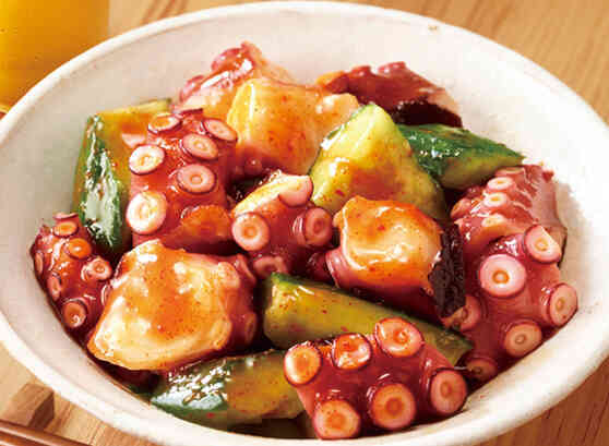 たこキムチは、タコとヤンニョム(キムチのタレ)を絡めた韓国料理で、もっちりしたタコと旨辛い味付けが特徴です。おかず、おつまみ、サラダのトッピングなど、様々な食べ方で楽しめます。